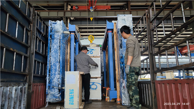 下午,深圳客戶兩臺(tái)凈化板碼垛機(jī)裝車發(fā)貨。